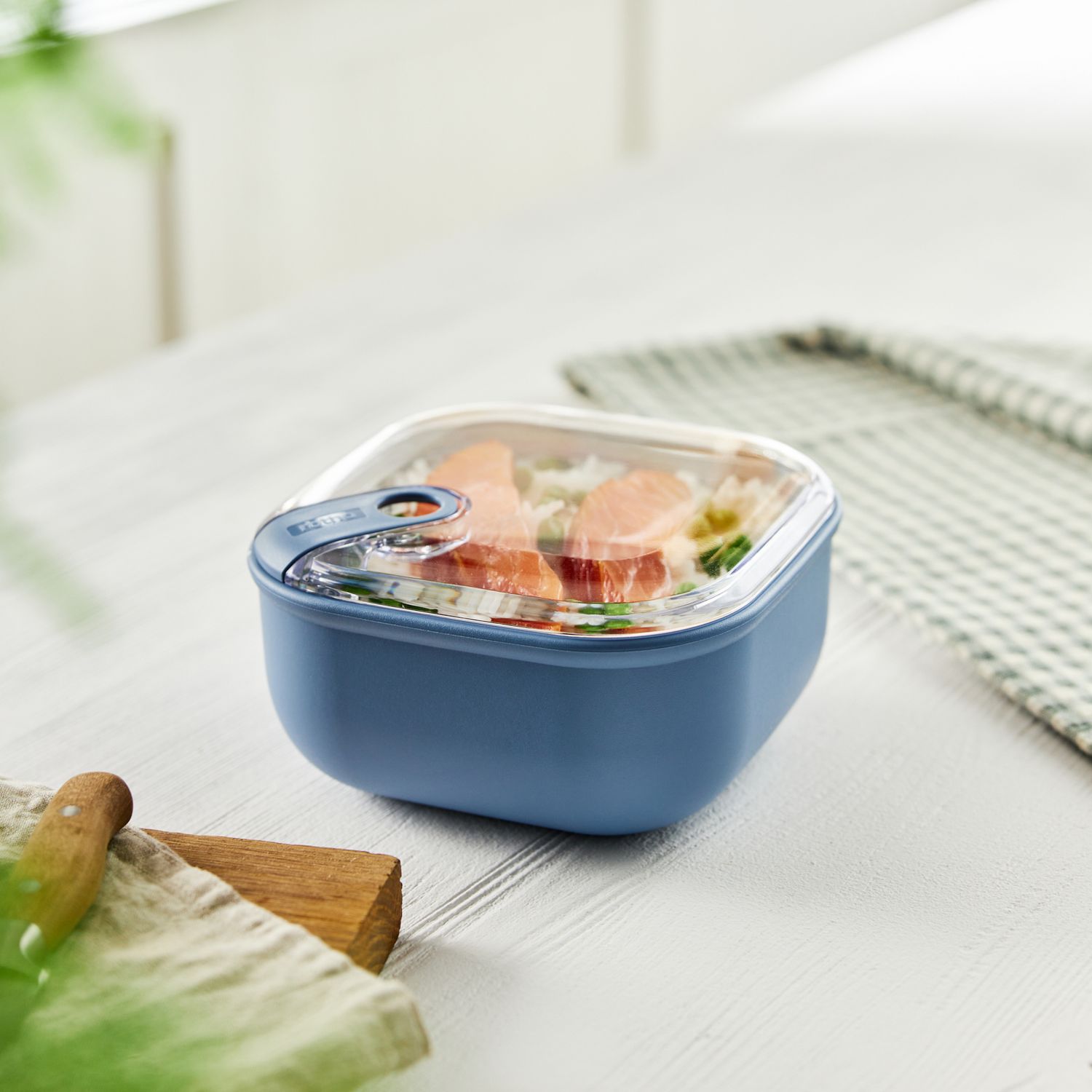 Nur ein Klick öffnet die Box und mit einem weiteren Klick versiegeln Sie sie dicht. Dank dieser innovativen Verschlussmechanismen ist die Box zu 100% auslaufsicher und luftdicht verschlossen. So können Sie Ihr Lieblingsessen oder Suppen bedenkenlos transportieren, ohne Angst haben zu müssen, dass etwas ausläuft. Ein wichtiger Punkt, der das Leben erleichtert ist, dass die Dose mikrowellengeeignet ist. Einfach den Deckel abnehmen und schon haben Sie warmes Essen auf dem Tisch stehen. Das moderne Design der Frischhaltebox macht sie zu einem echten Blickfang in der Küche.