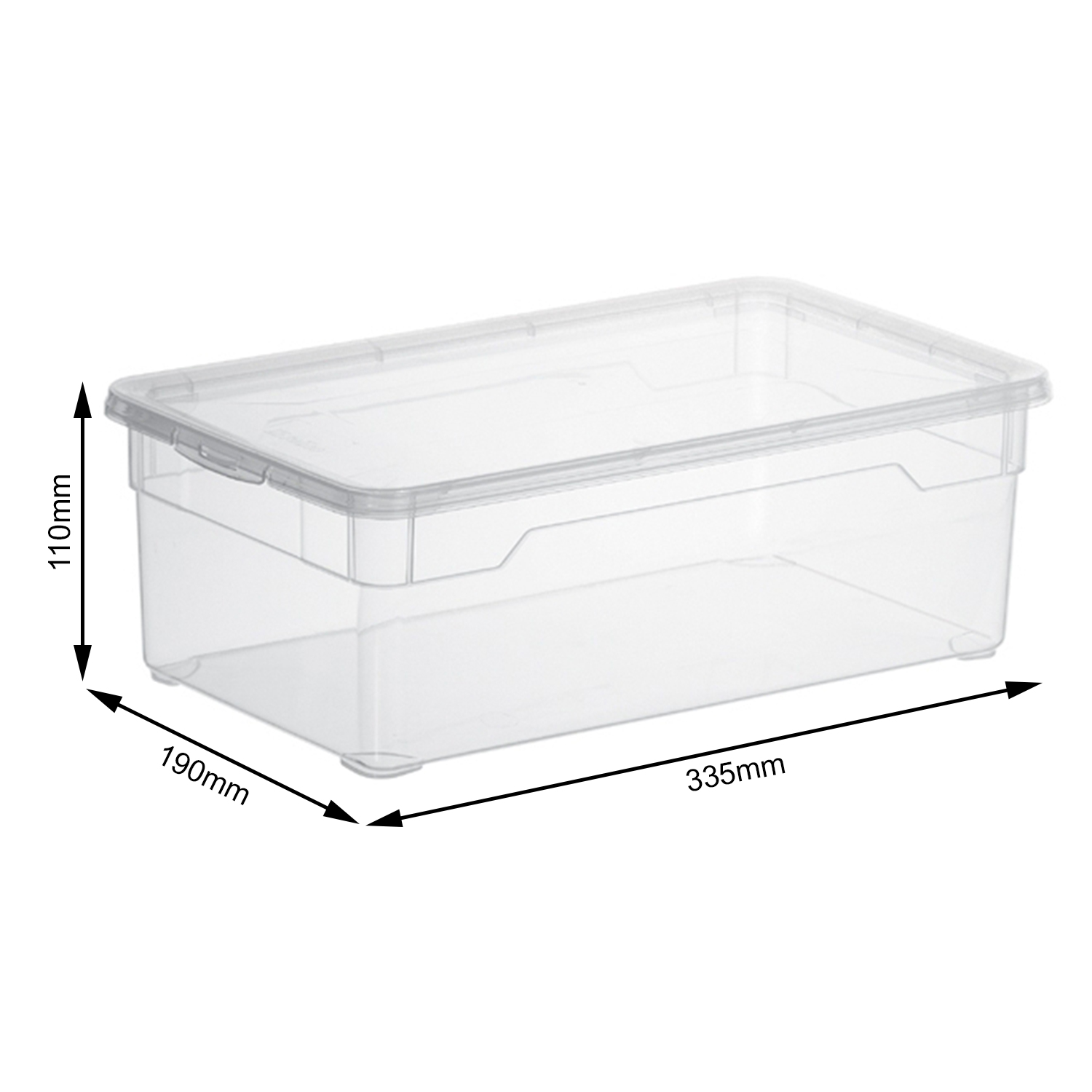 Die CLEAR Boxen Lady Shoe eignen sich mit ihren Abmessungen von 330 x 190 x 110 mm perfekt zur Aufbewahrung von Schuhen aller Art. Mit den dazugehörigen Deckeln werden sie zuverlässig verschlossen, so dass der Inhalt vor Staub und Feuchtigkeit geschützt ist. Zugleich bietet der transparente Kunststoff jederzeit Einblick, ohne dass Sie die Boxen öffnen müssen. Die praktischen Ordnungshelfer der Linie CLEAR sind in zahlreichen verschiedenen Grössen erhältlich, die aufeinander abgestimmt und daher platzsparend stapelbar sind.