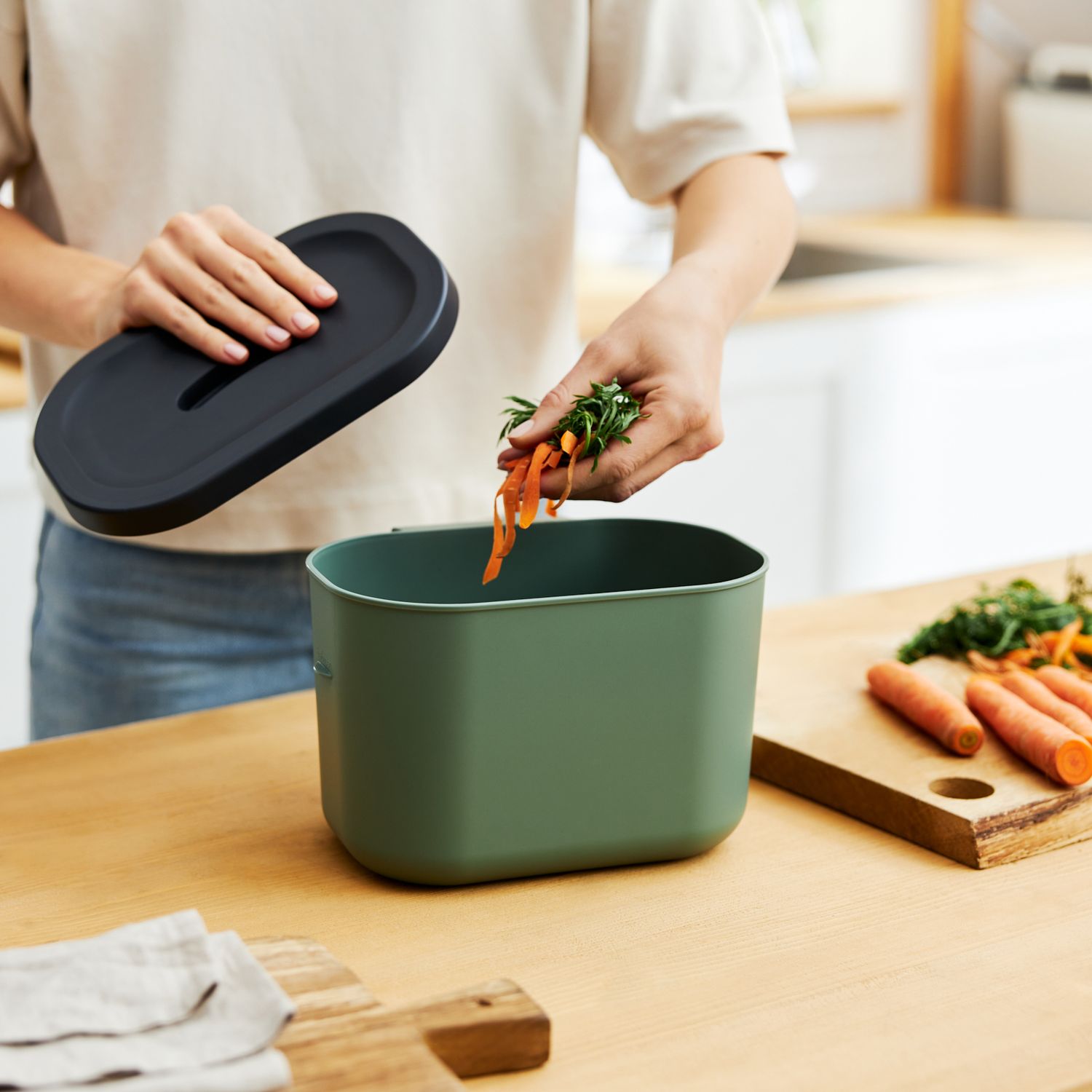 Made from 100% recycled plastic, the SALSA organic waste bins combine functionality with responsible use of resources. The smooth surfaces are easy to clean and ensure hygienic everyday use. The SALSA organic waste bin set therefore supports simple, clean and sustainable kitchen organization.