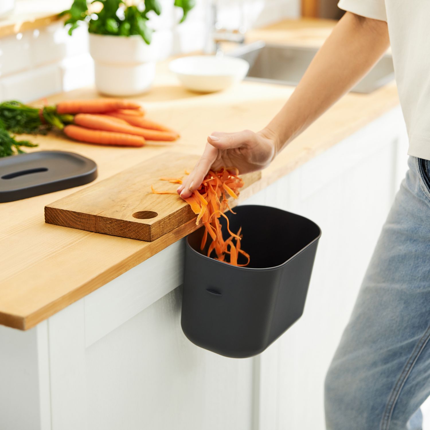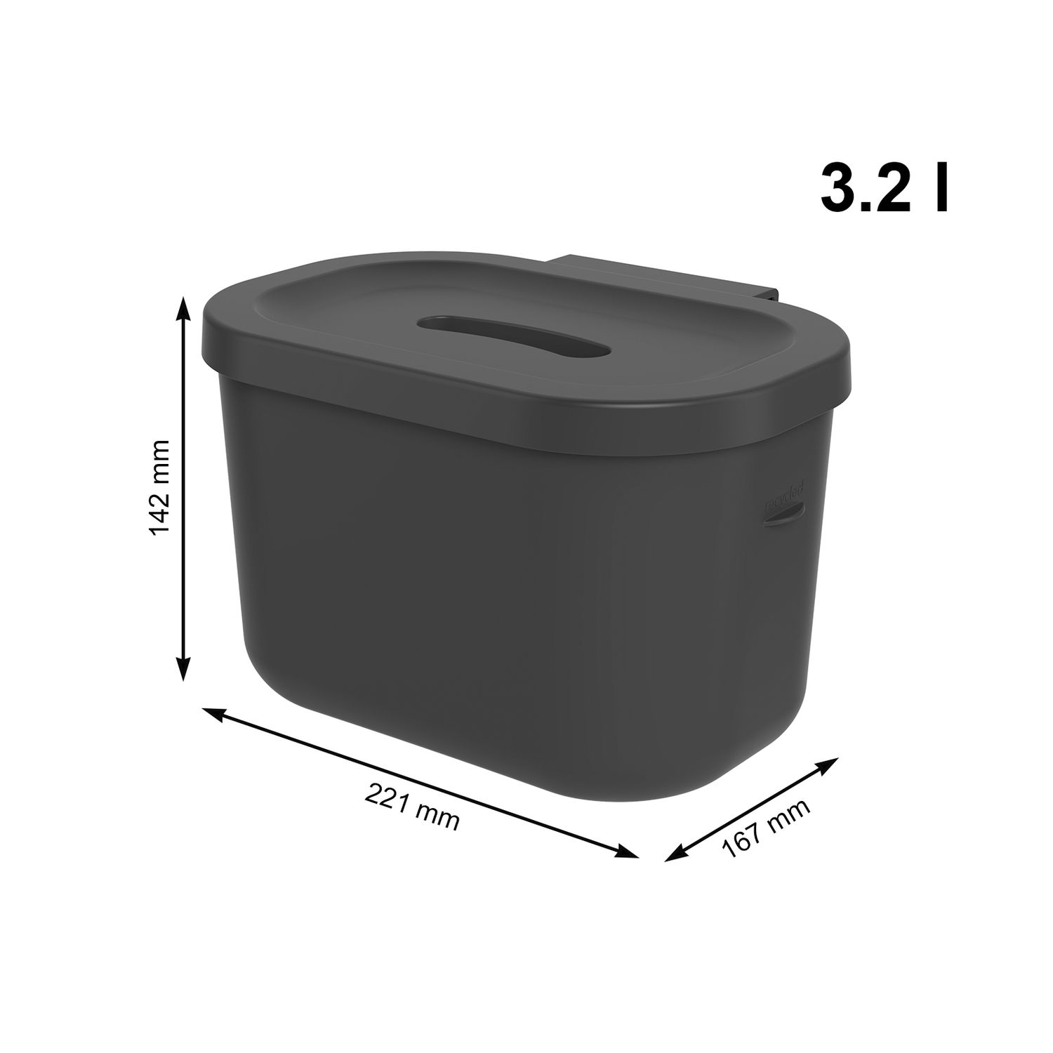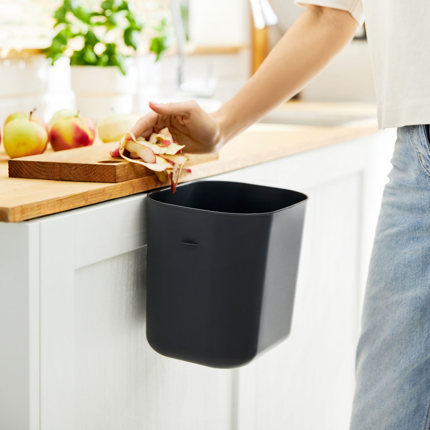 The compact containers are perfect for use on the countertop and support you in everyday cooking and food preparation. Thanks to the practical hanging device, the organic waste bins can also be easily attached to cabinet doors or drawers, allowing kitchen waste to be disposed of directly while cutting and peeling. The lid with integrated grip recess can either be placed loosely on the container or removed completely if needed, making handling especially convenient.
