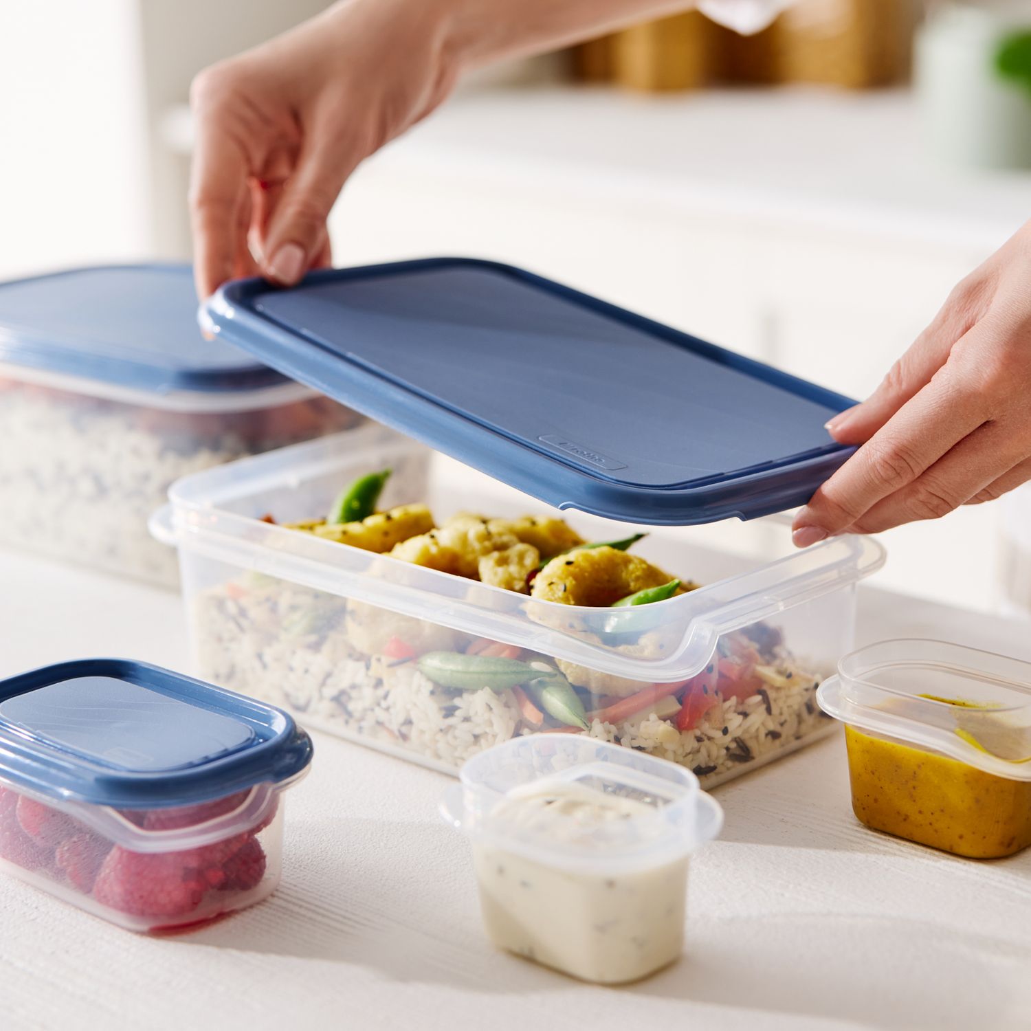 Our versatile RONDO food storage container comes in various sizes, from 0.07 to 8.0 litres, making them perfect for storing anything from snacks to leftovers and even entire meals. The tight-fitting lid also makes it suitable for on-the-go and freezer use. Finally, it's dishwasher-safe for easy cleaning.