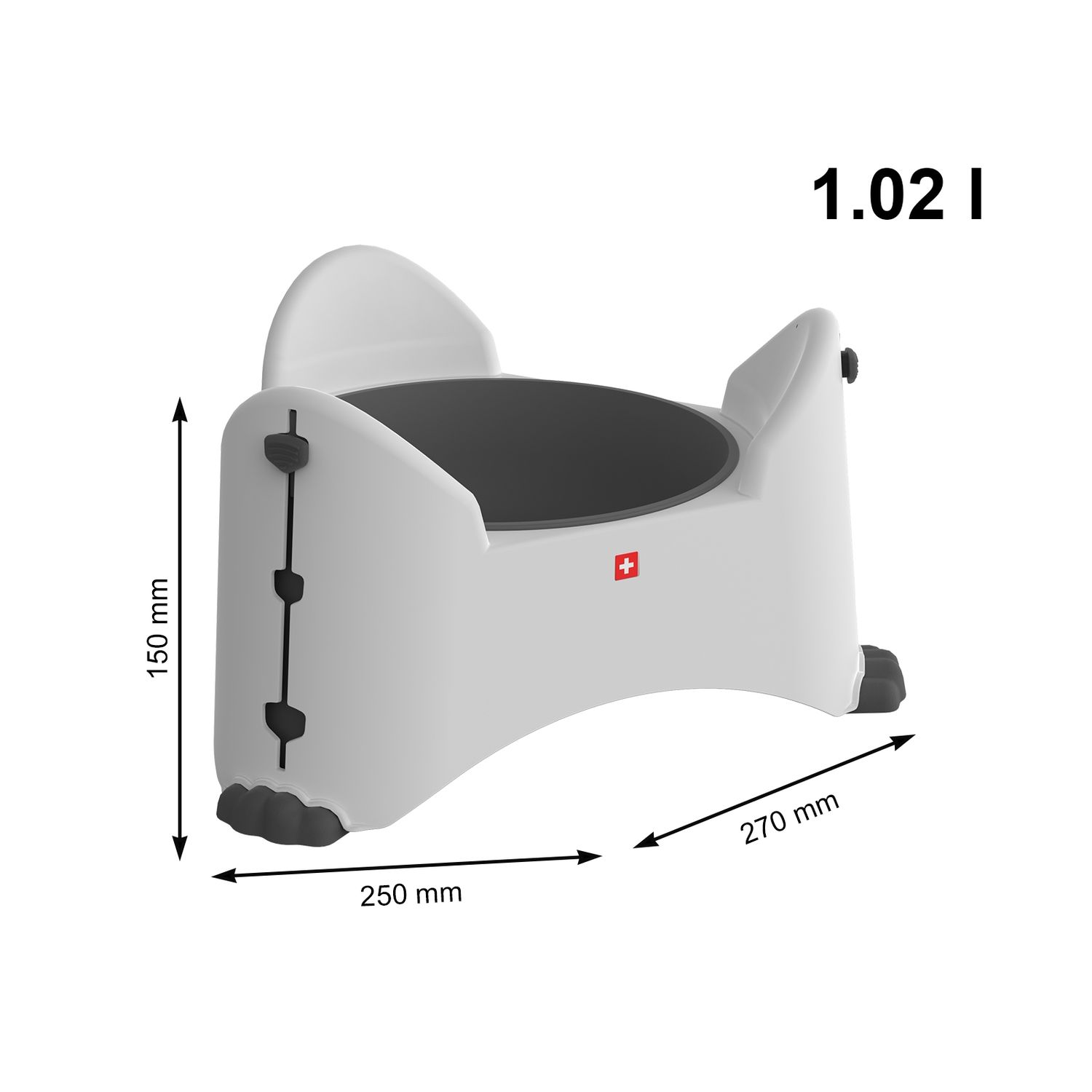 With our height-adjustable feeding bowl SAMMY, we now have the perfect product for all animal lovers. No matter what breed, size or age group your dog is, our feeding bowl allows for more convenience and is also suitable for other pets. Thanks to the high-quality polypropylene frame, the bowl is very stable and durable. In addition, the easily removable, food-safe TRESA bowl is very easy to clean and is even dishwasher-safe.
