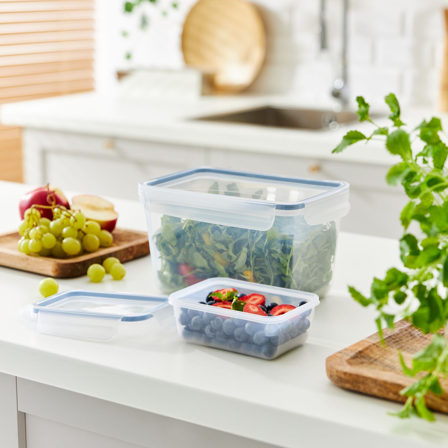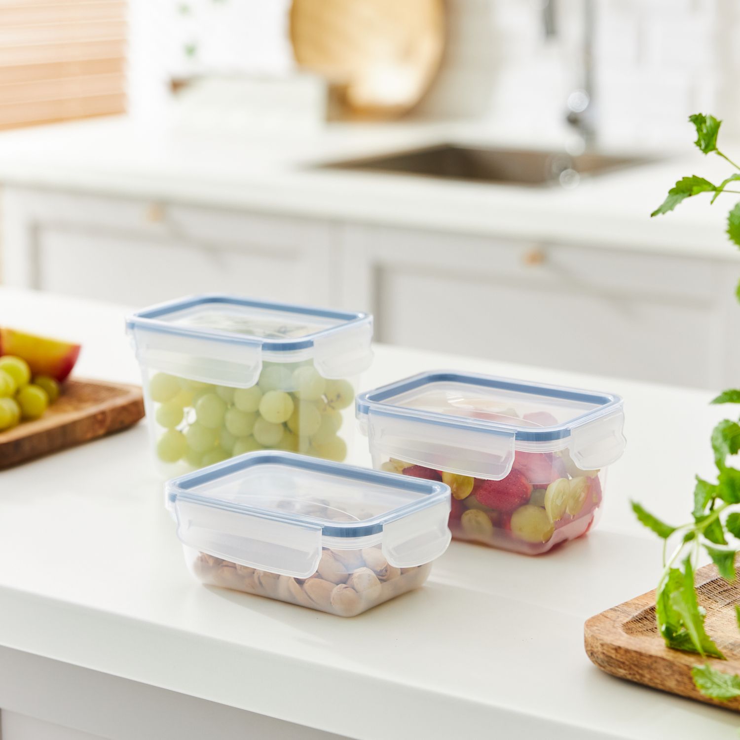 Thanks to the transparent base, you can always see the contents without having to open the container. When not in use, the containers can be nested inside one another to save space and stored quickly. The CLIC & LOCK set combines reliable sealing, practical handling and well-thought-out functionality – for more freshness and everyday convenience.