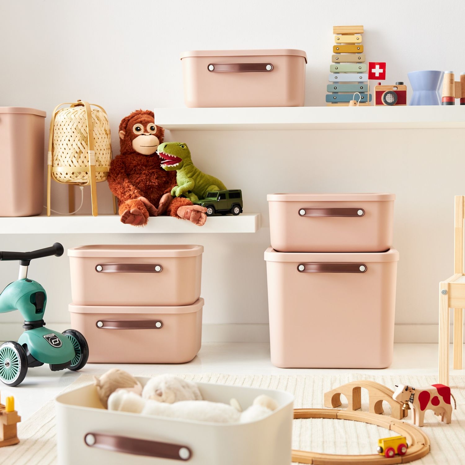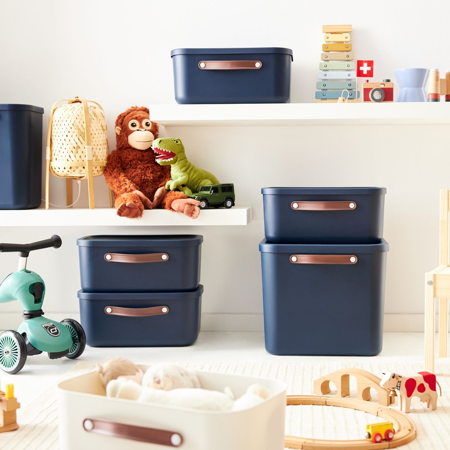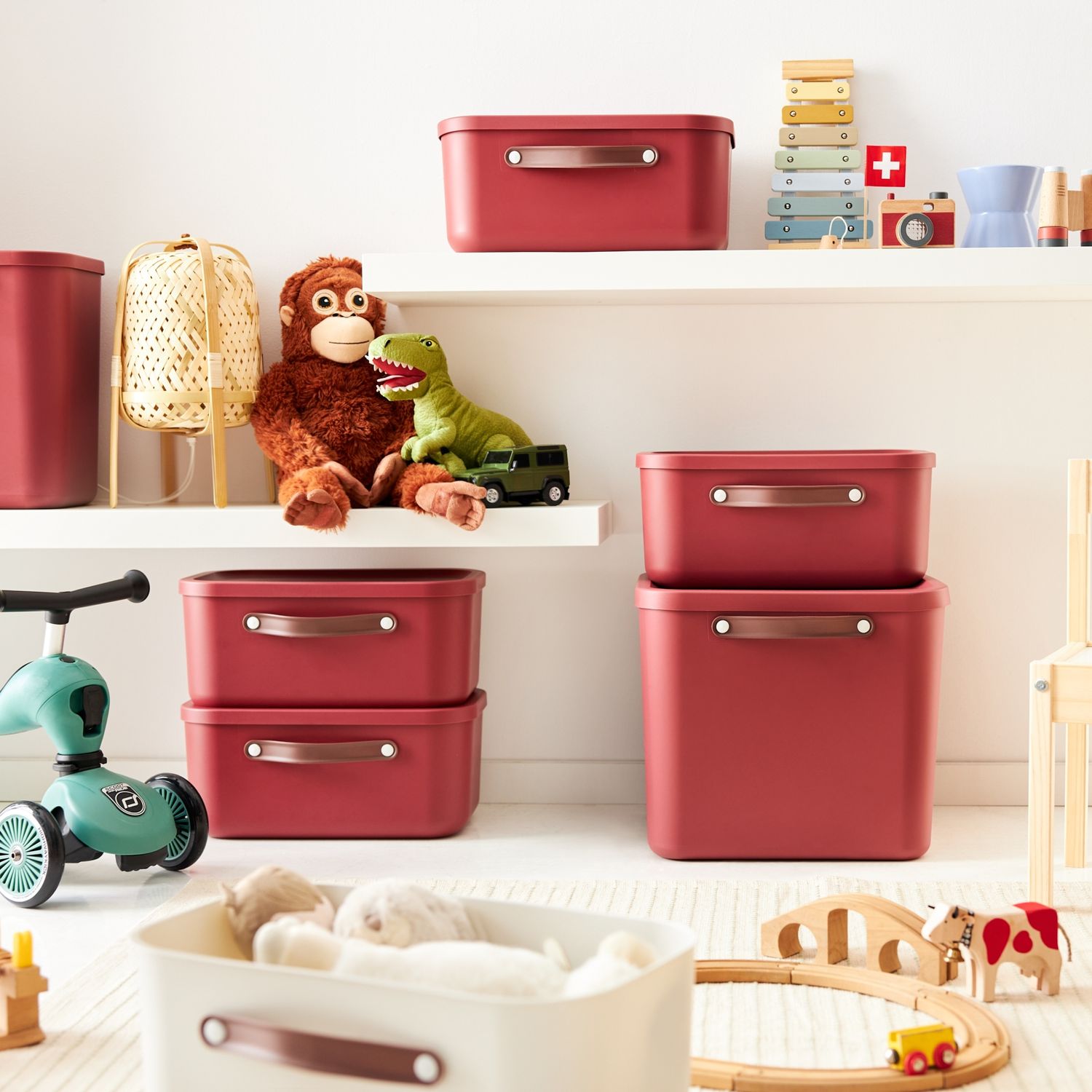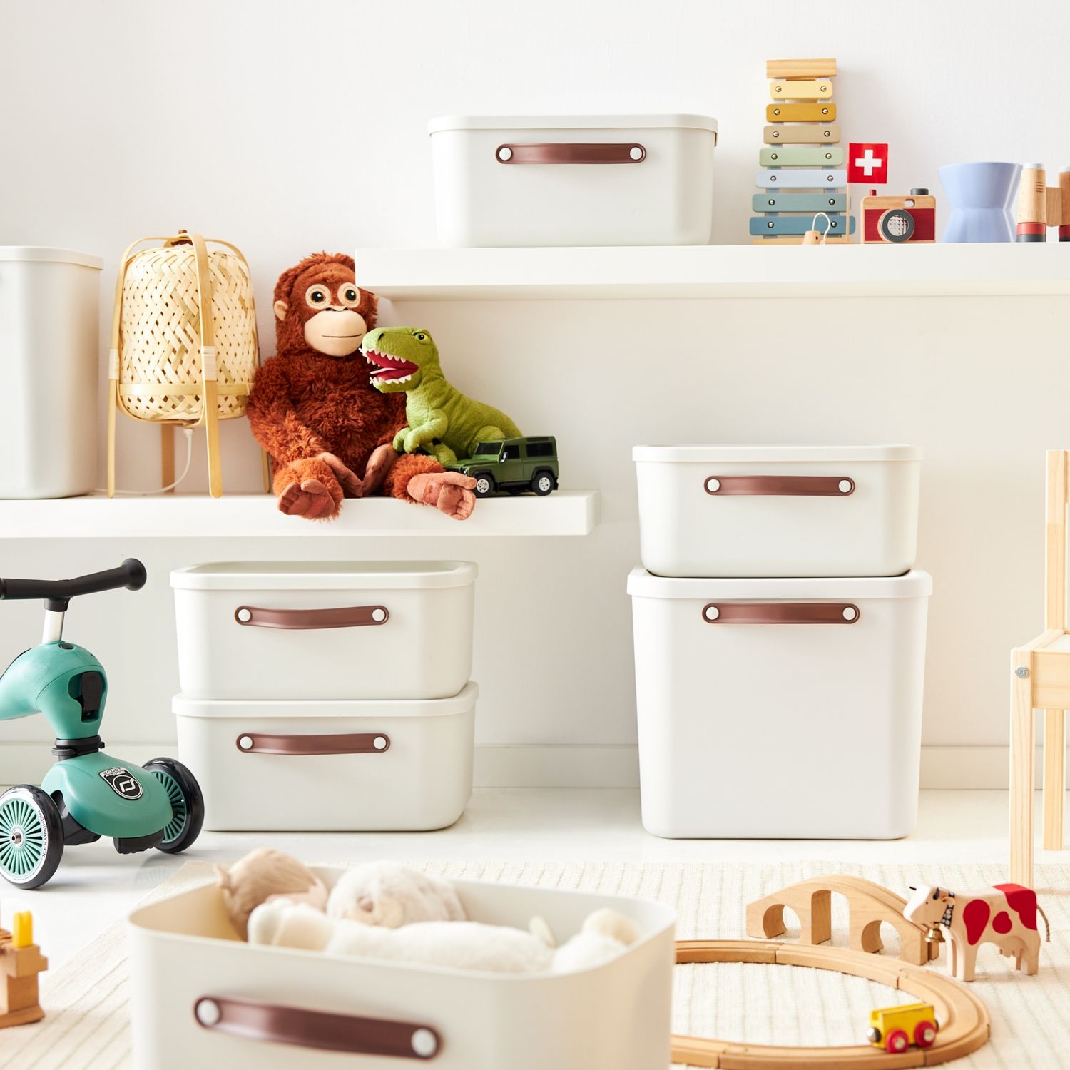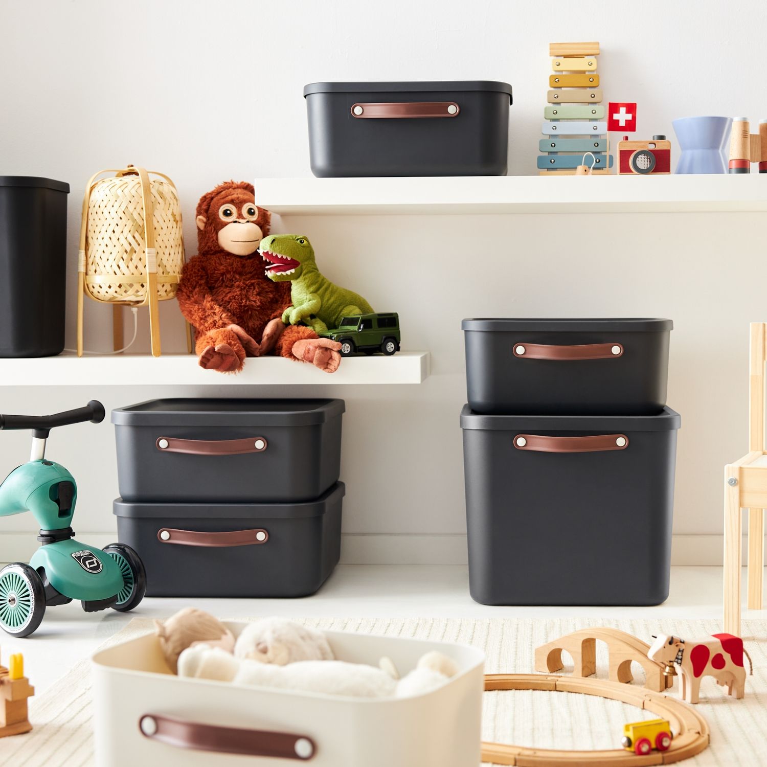 Les 3 tailles différentes du lot vous permettent de choisir comment vous souhaitez concevoir votre propre système d'organisation. Qu'il s'agisse de vêtements dans votre placard, de jouets dans la chambre des enfants ou d'objets du quotidien dans le salon, avec nos boîtes, vous trouverez la place idéale pour tout.