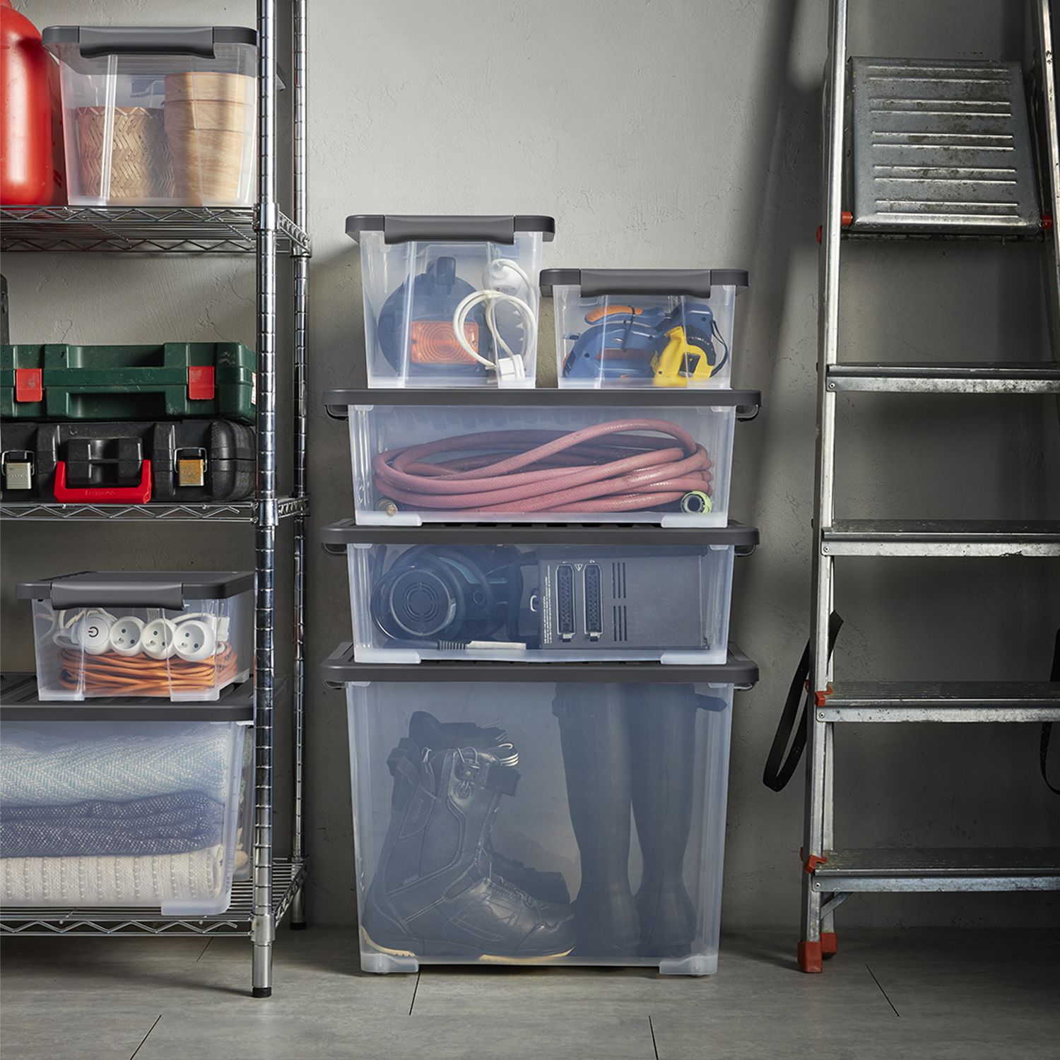• Système modulaire – boîtes de différentes tailles combinables & empilables pour un rangement optimal