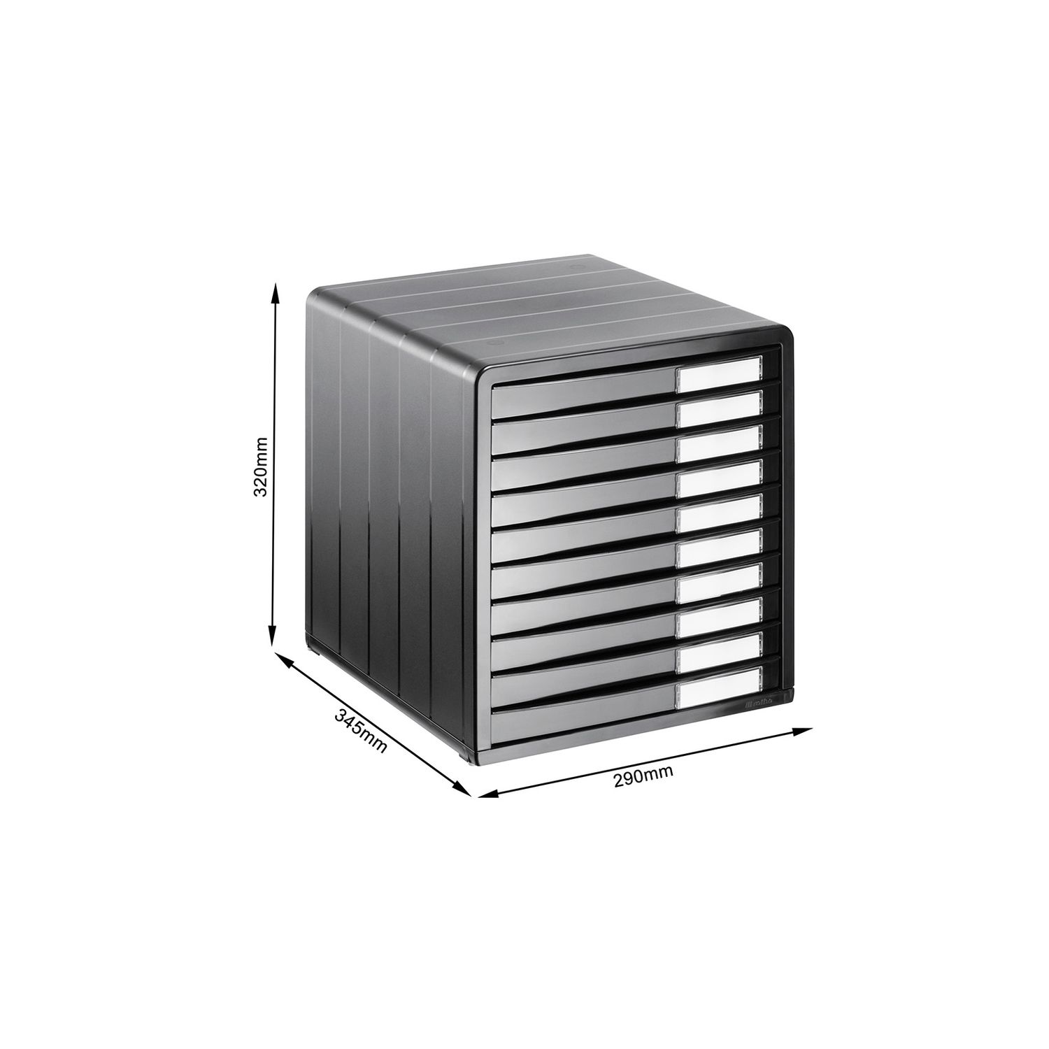 Tour de bureau à tiroirs Rotho TIMELESS 10 tiroirs A4 | Dimensions extérieures : 345 x 290 x 320 mm | Tour de bureau à tiroir avec 10 tiroirs