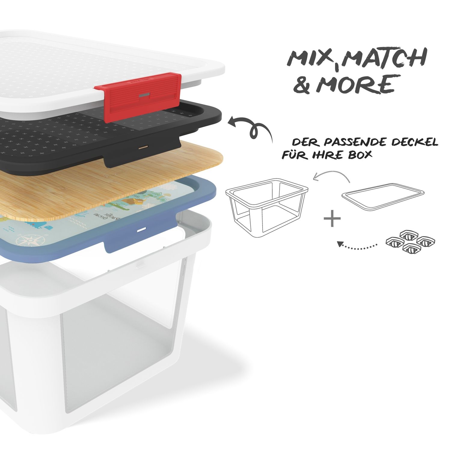 Avec le concept imaginatif Mix & Match, dans lequel vous disposez de différents fonds et couvercles en fonction de l'application ou du design. Il y a plusieurs raisons pour lesquelles ces boîtes sont les parfaites polyvalentes. Le cadre robuste le rend facile à transporter. Les parois hautement transparentes permettent de voir facilement le contenu à tout moment.