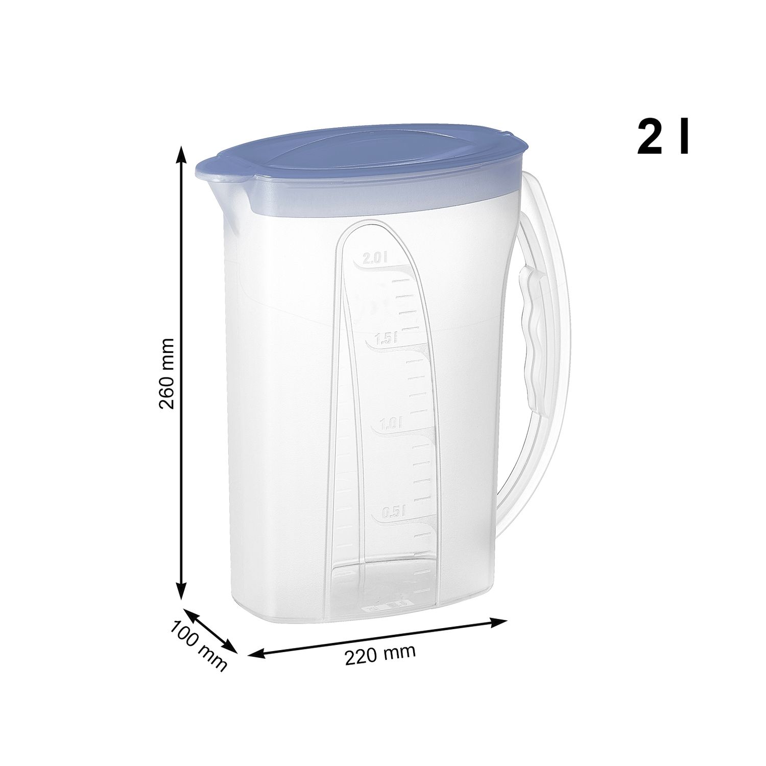 La forme du pichet réfrigérateur FRESH est grande et mince. Il n'y a donc aucun problème à le ranger dans le compartiment latéral du réfrigérateur. La capacité est de 2 litres. Grâce à la poignée robuste, la carafe tient confortablement dans la main même lorsqu'elle est pleine et assure une prise sûre. La verseuse de réfrigérateur peut être ouverte et fermée en appuyant doucement sur le creux de forme ergonomique. Il est également facile à utiliser pour les enfants.