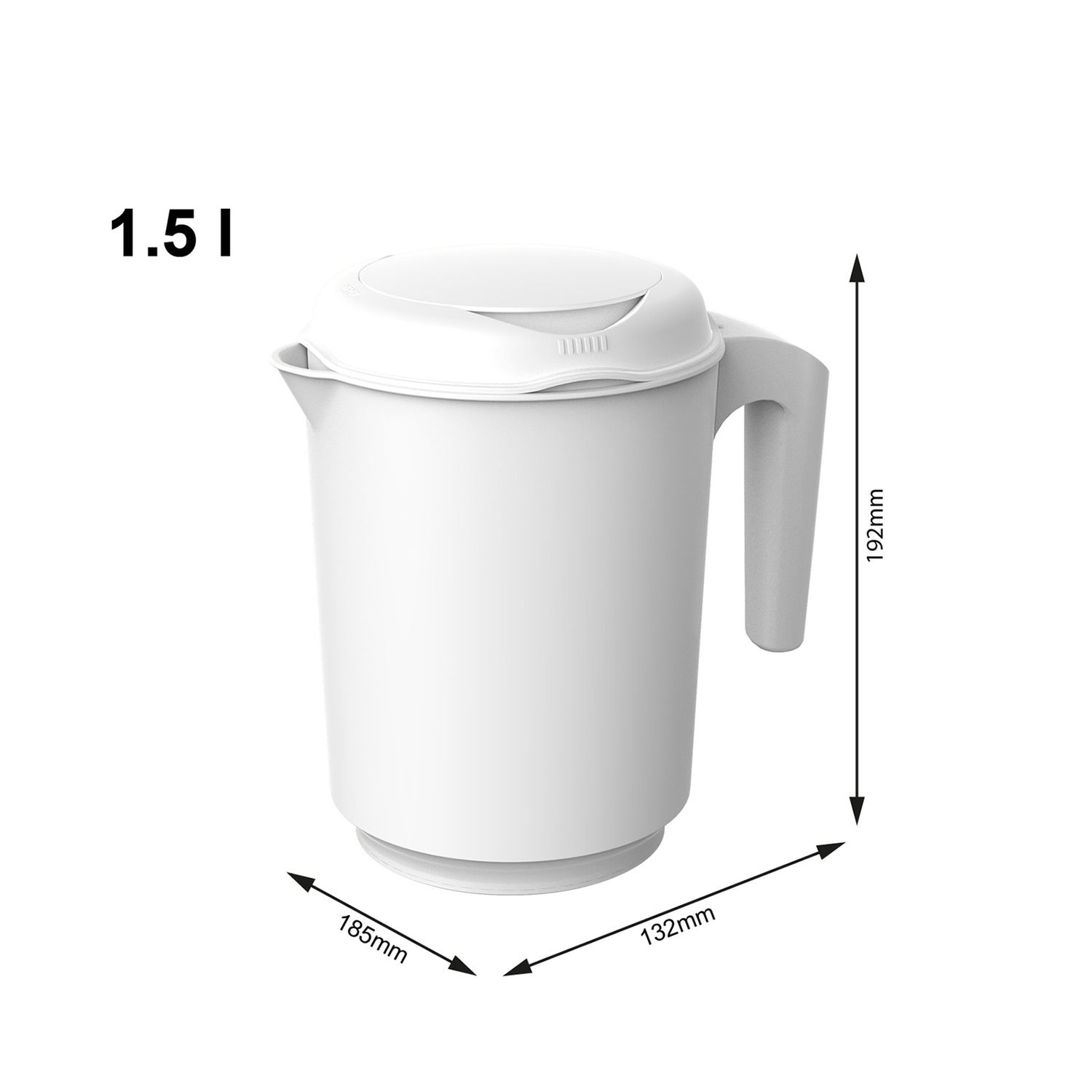 • Couvercle en deux parties avec anneau de protection contre les éclaboussures, filtre et bec verseur