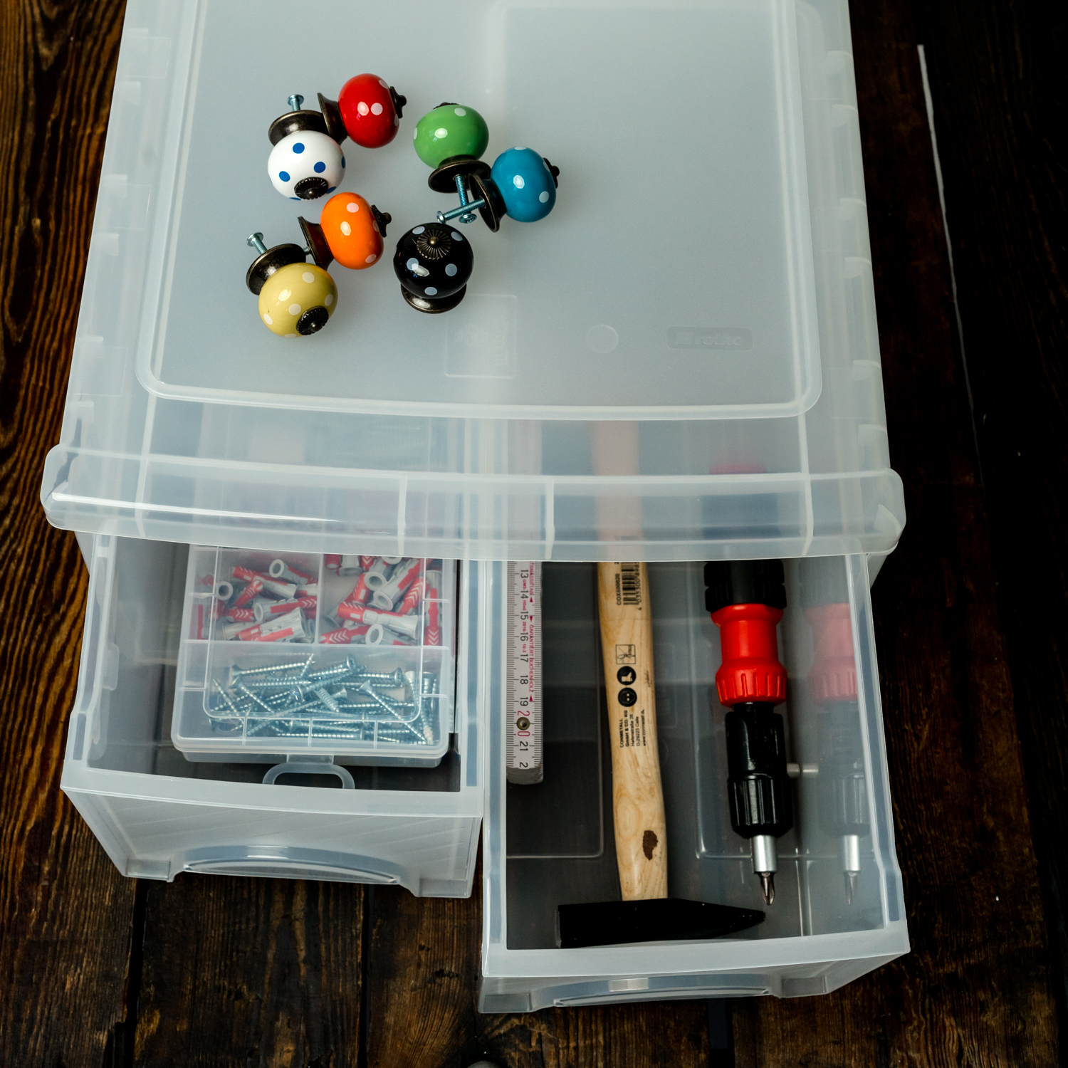 Du maquillage aux jouets, des vis aux magazines en passant par les documents au bureau : la boîte pratique est tout simplement idéale pour ranger une grande variété d'objets. Peu importe que les enfants utilisent la boîte d'écurie pour le rangement ou que vous utilisiez la FRONTBOX au bureau, au sous-sol, dans la salle de jeux ou à l'atelier. Il garde les choses organisées simplement et efficacement, et la face avant transparente vous permet de voir le contenu immédiatement, ce qui évite la recherche. Avec la boîte avant, le rangement est enfin amusant - et l'encombrement appartient au passé.