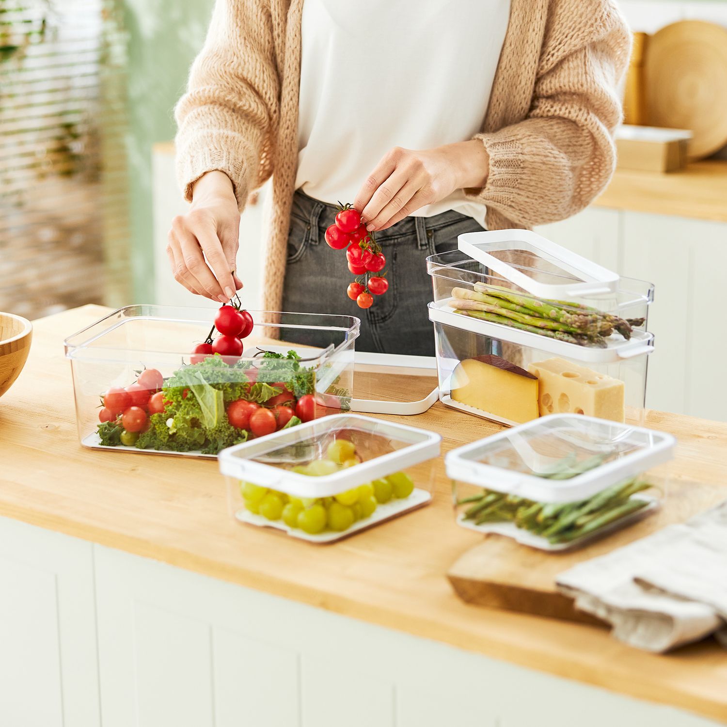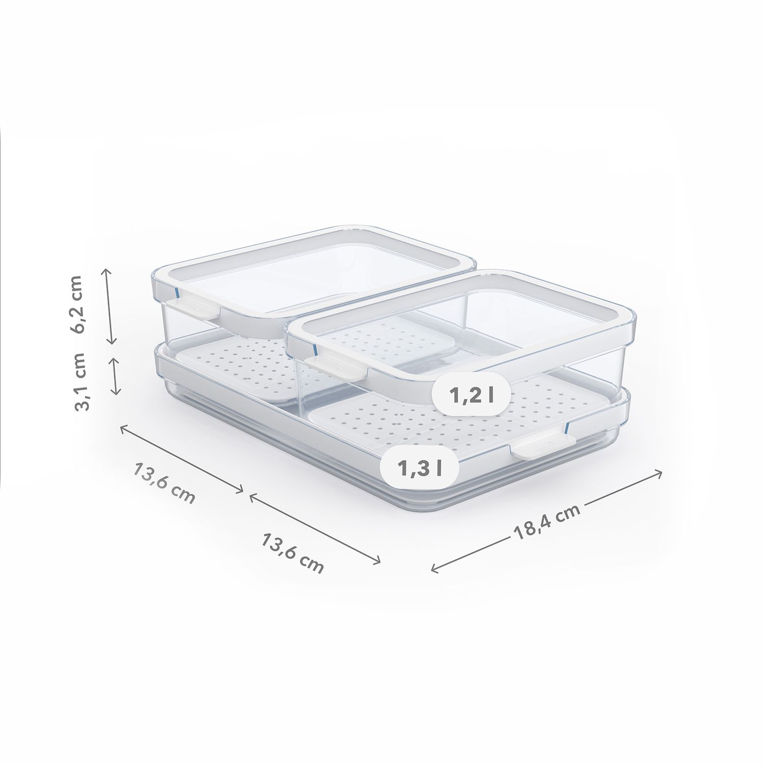 Avec leur design moderne et minimaliste, les organisateurs s’intègrent harmonieusement dans toutes les cuisines et apportent une touche soignée. Chaque boîte est munie d’un couvercle qui protège le contenu et garde les aliments frais plus longtemps.