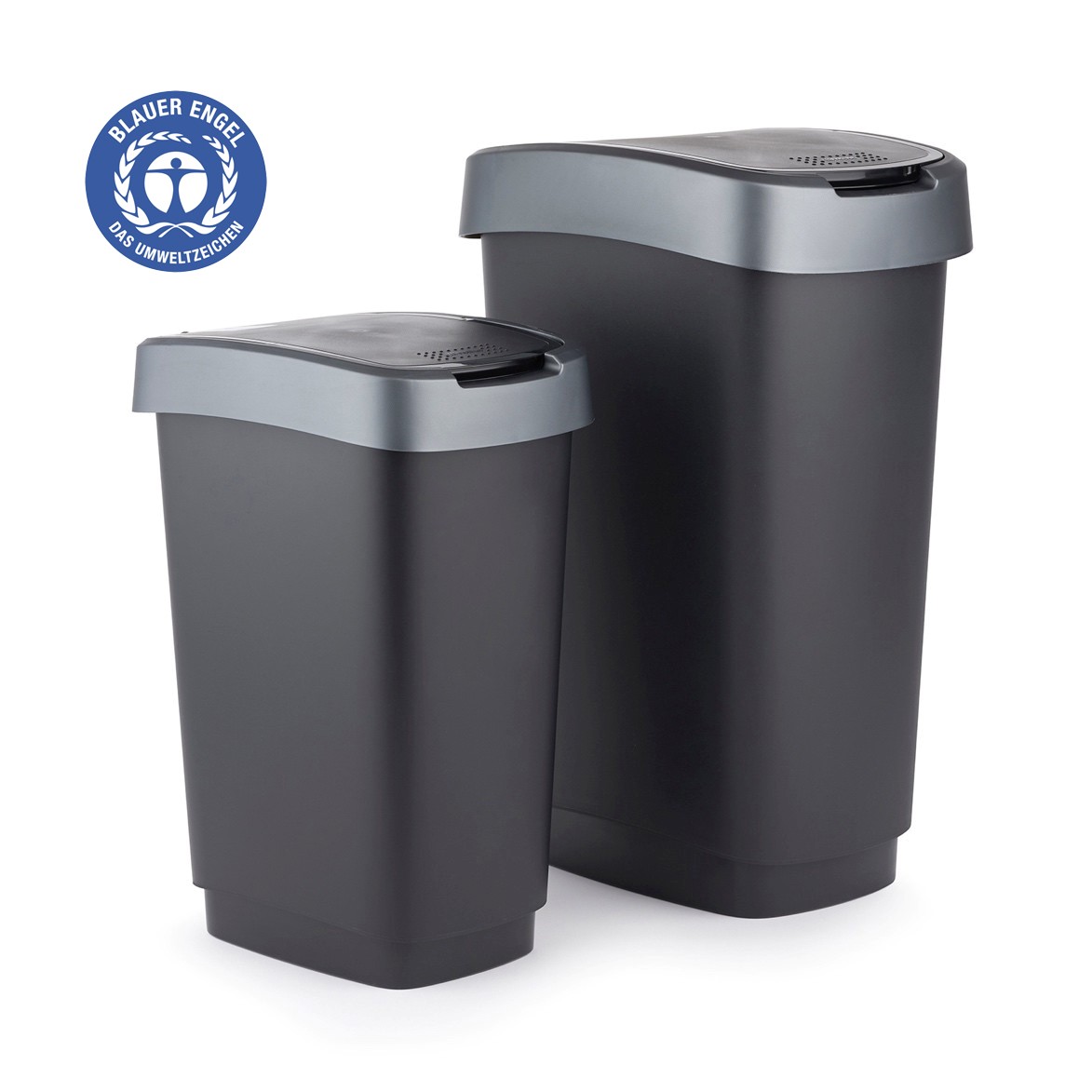 Propres et avec couvercle battant , les poubelles de la série TWIST sont disponibles en différentes tailles.