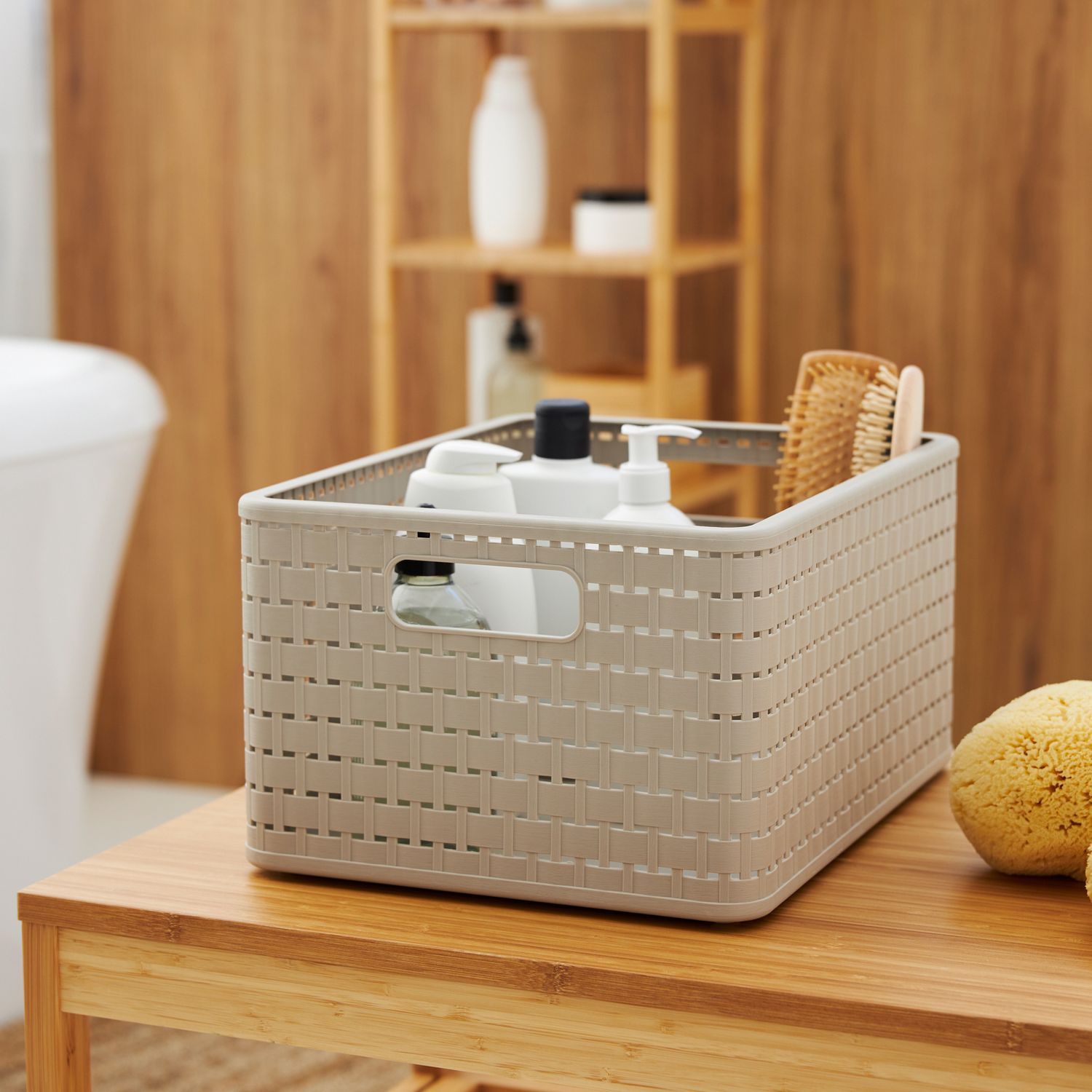 Ordentlich Wohnen ohne langes Suchen - mit den Rotho COUNTRY Körben ist dies endlich möglich. Ob als Aufbewahrung im Wohnzimmer für Zeitschriften, ob in der Diele als Ablage für Schals und Mützen oder als Spielzeugkiste, in die stapelbaren Boxen passt alles, was sonst offen rumliegt. Die pflegeleichten COUNTRY Körbe lassen sich bequem tragen und ziehen bei Bedarf von einem Raum zum anderen um. Im Bad sorgen die feuchtigkeitsunempfindlichen Boxen für die ordentliche und geschützte Aufbewahrung von Pflegeprodukten oder Gästehandtüchern.
