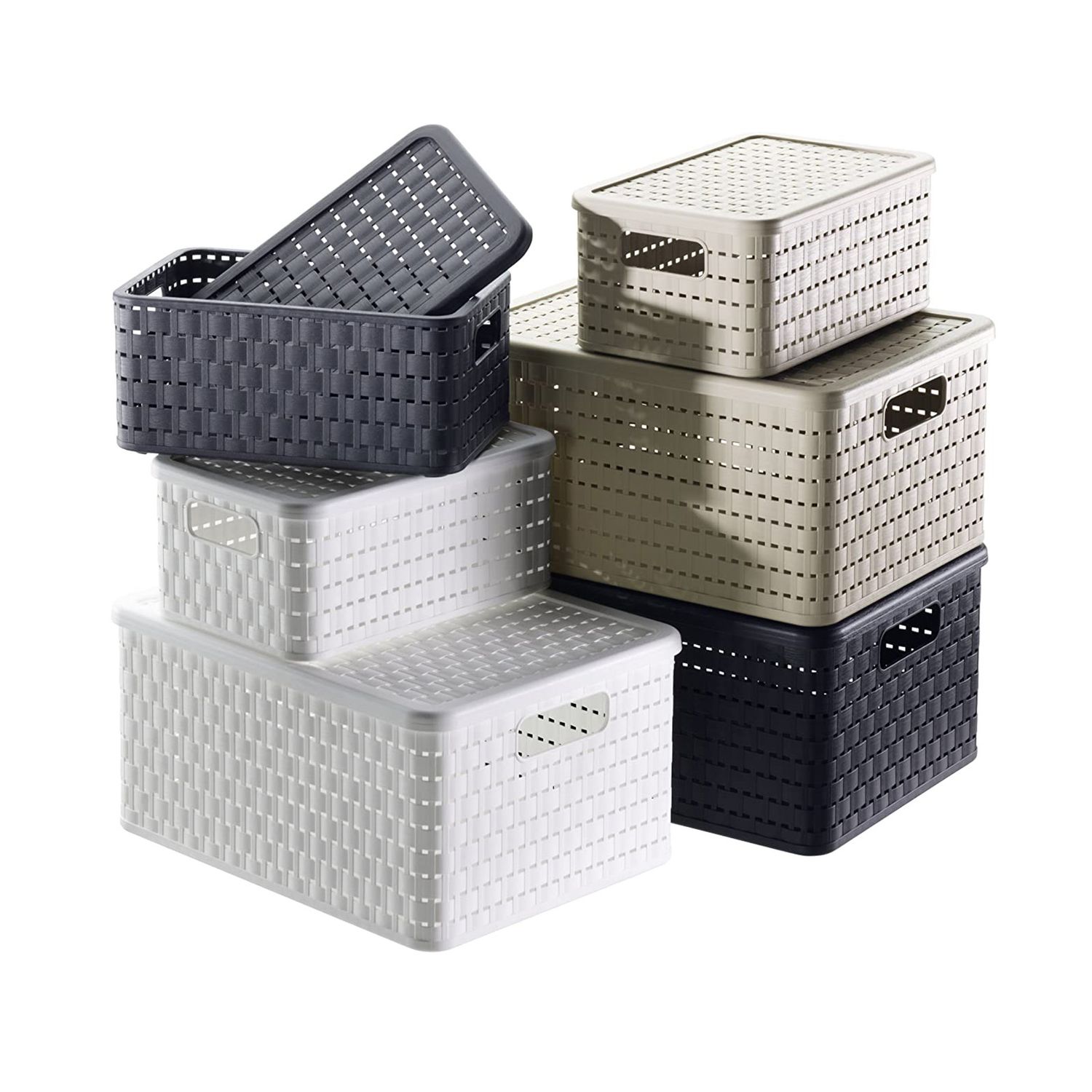 3 teiliges Aufbewahrungsboxen Set COUNTRY aus Kunststoff in moderner Rattan-Optik