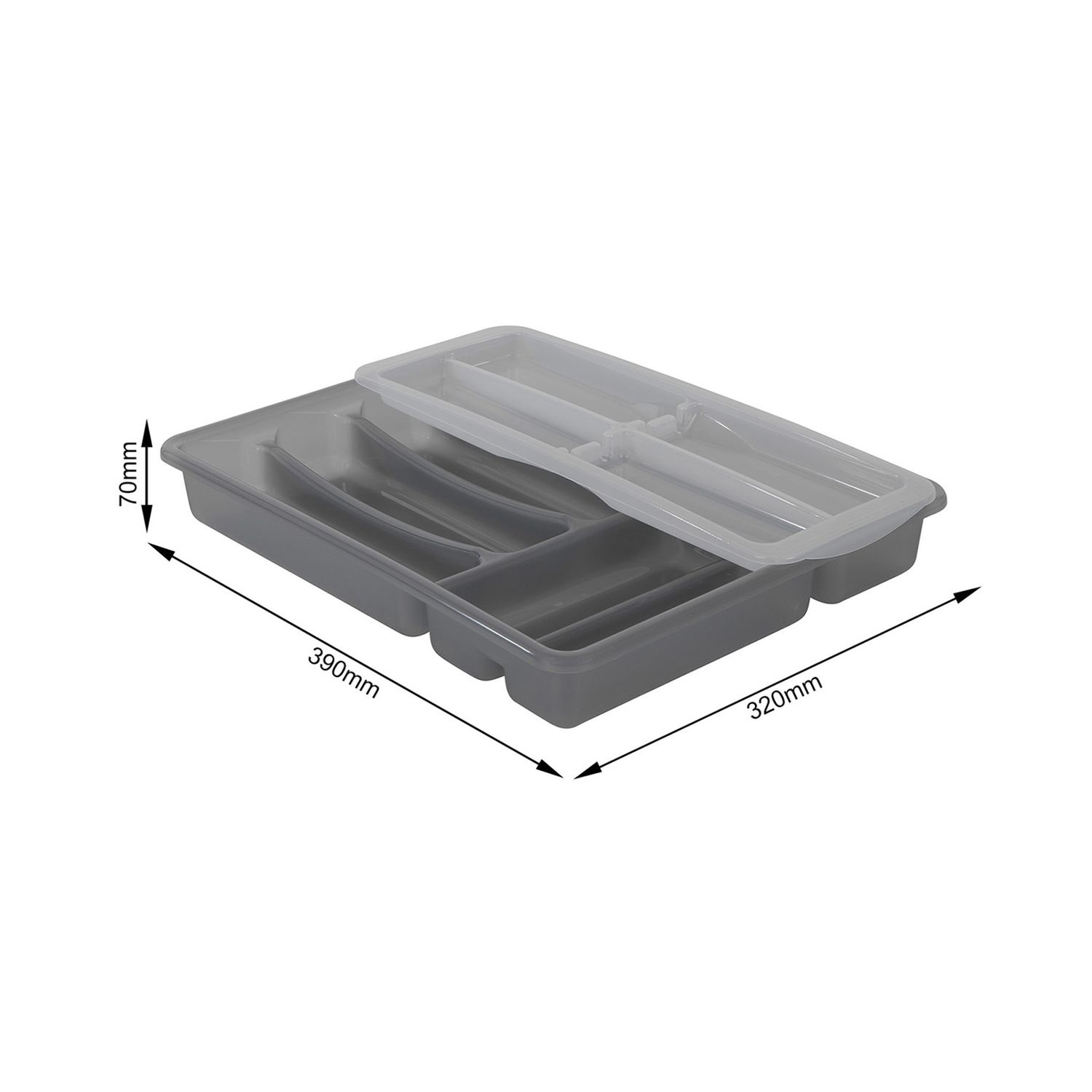 Der Besteckkasten Topglide BASIC wurde mit Sinn für das Praktische konzipiert. Fünf Fächer bieten ausreichend Platz für Kuchengabeln, Kaffeelöffel, Gabeln, Messer und Suppenlöffel. Die unverzichtbaren Dinge wie Kochlöffel, Fleischgabeln, Pfannenwender, Korkenzieher und dergleichen finden in dem sechsten, besonders großen, seitlich angebrachten Fach ihren Platz. Zusätzlich und besonders geeignet für große Messer enthält der Besteckkasten Topglide BASIC einen Top-Gleiter. So wird die Aufbewahrung von Besteck zu einem Kinderspiel und Sie müssen nicht mehr lange nach dem gewünschten Besteck suchen. Doch der Besteckkasten kann auch für die Sortierung und Aufbewahrung von Pinseln, Stiften oder längeren Bastel-Utensilien genutzt werden.