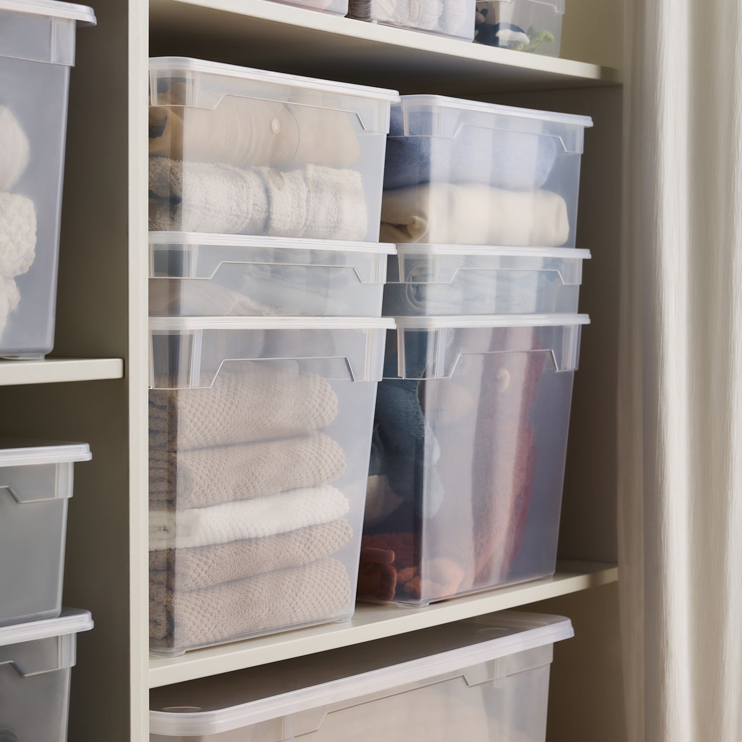 Im Kampf gegen Unordnung ist glasklare Optik Trumpf: Mit den transparenten Boxen der Linie CLEAR schützen Sie nützliche Dinge vor Staub oder Feuchtigkeit, ohne sie in undurchsichtigen Läden oder Schränken verschwinden zu lassen. Verzweifelte Suchaktionen haben damit ein Ende.