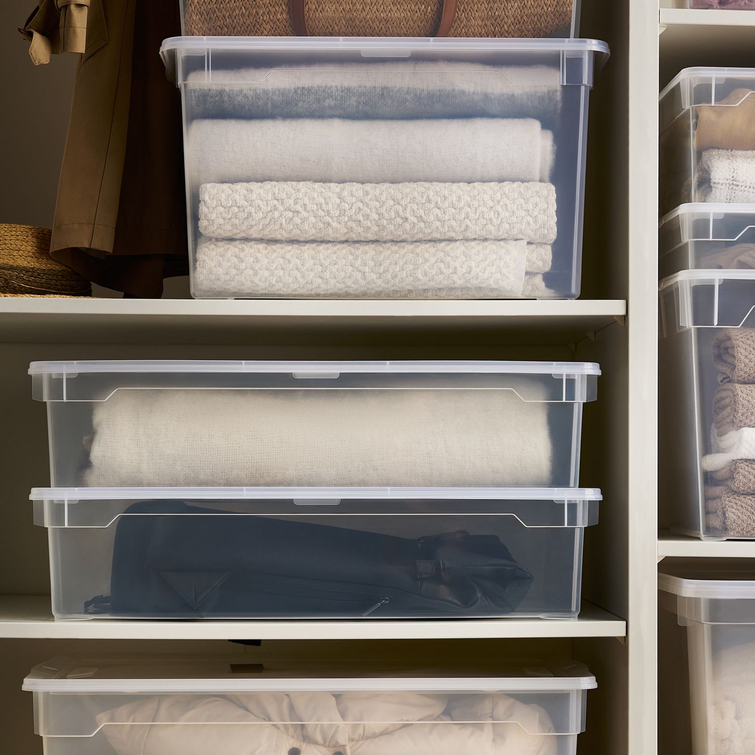 Im Kampf gegen Unordnung ist glasklare Optik Trumpf: Mit den transparenten Boxen der Linie CLEAR schützen Sie nützliche Dinge vor Staub oder Feuchtigkeit, ohne sie in undurchsichtigen Läden oder Schränken verschwinden zu lassen. Verzweifelte Suchaktionen haben damit ein Ende.