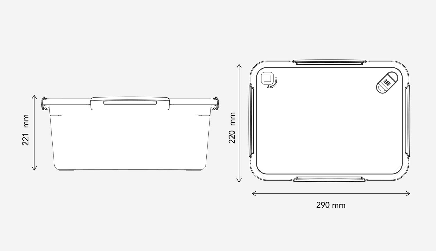 Die Mikrowellendose MEMORY hat einen Inhalt von 5 l wird mit dem dazugehörigen Deckel aromadichtverschlossen. Der Deckel verfügt über ein integriertes Dampfventil und ist dank des Klick-Verschlusses kinderleicht zu bedienen. Alle Mikrowellenbehälter und Deckel der Linie MEMORY weisen eine Symbol-Markierung auf, so dass Sie die zueinander passenden Teile sofort erkennen. Der robuste Kunststoff ist selbstverständlich lebensmittelecht und gibt auch im Kontakt mit heissen Speisen keinerlei Schadstoffe ab. Erhältlich sind Mikrowellenbehälter der Linie MEMORY in insgesamt 10 Grössenvarianten und in unterschiedlichen Farben, die zusammen ein perfekt aufeinander abgestimmtes System ergeben.