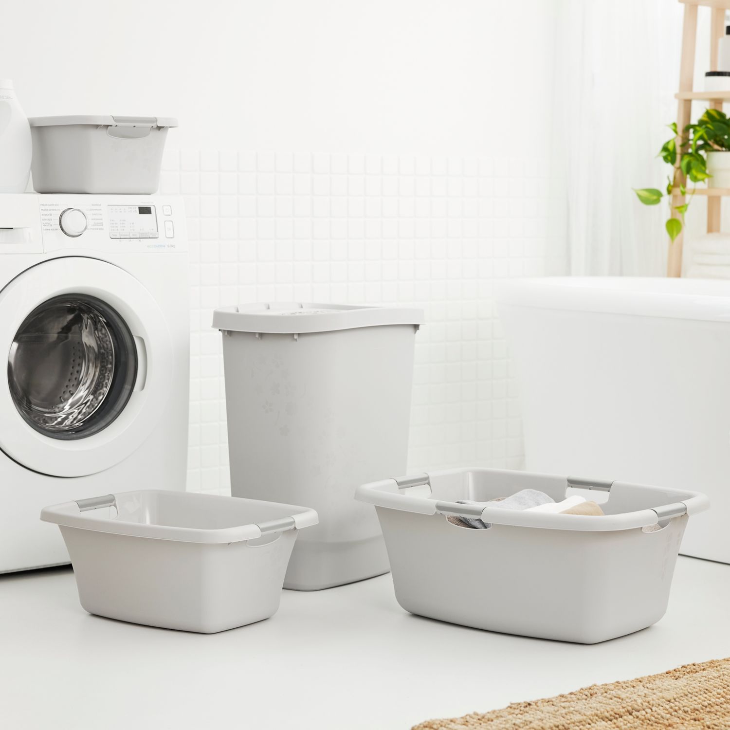 Die funktionale Rotho Wäschewanne FLOWERS erleichtert Ihnen nicht nur das Sammeln und Transportieren von Schmutz- und Bügelwäsche, sondern eignet sich auch hervorragend als vielseitiger Haushaltskorb für Einkäufe oder zum Einsortieren.